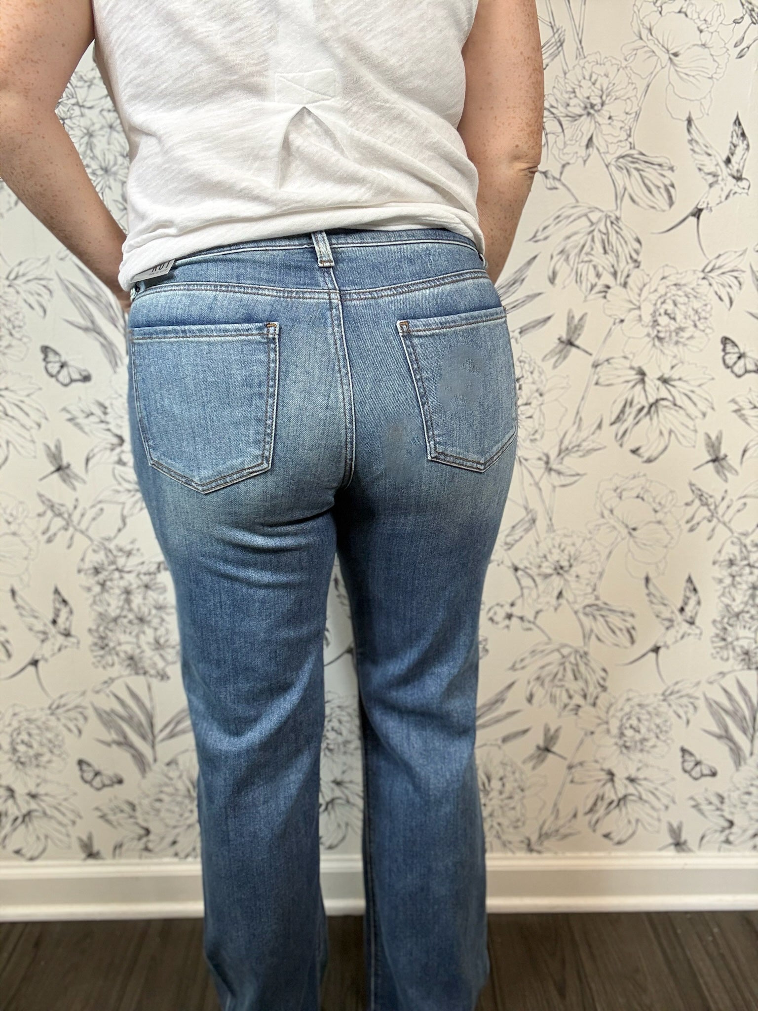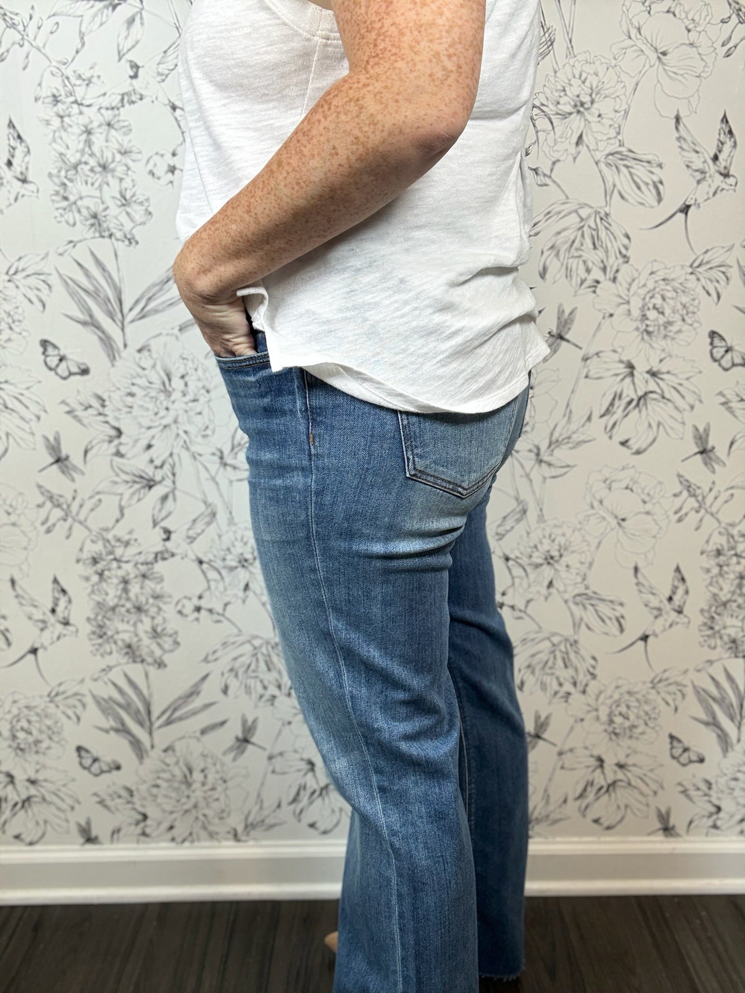Step up your denim game with Kelsey Ankle Flare Rigor! Made from premium stretch denim, these ankle-cropped flares feature a lived-in faded look and fab ab front pockets for a smooth and comfortable fit. Classic and casual-chic, these jeans are perfect for any occasion.