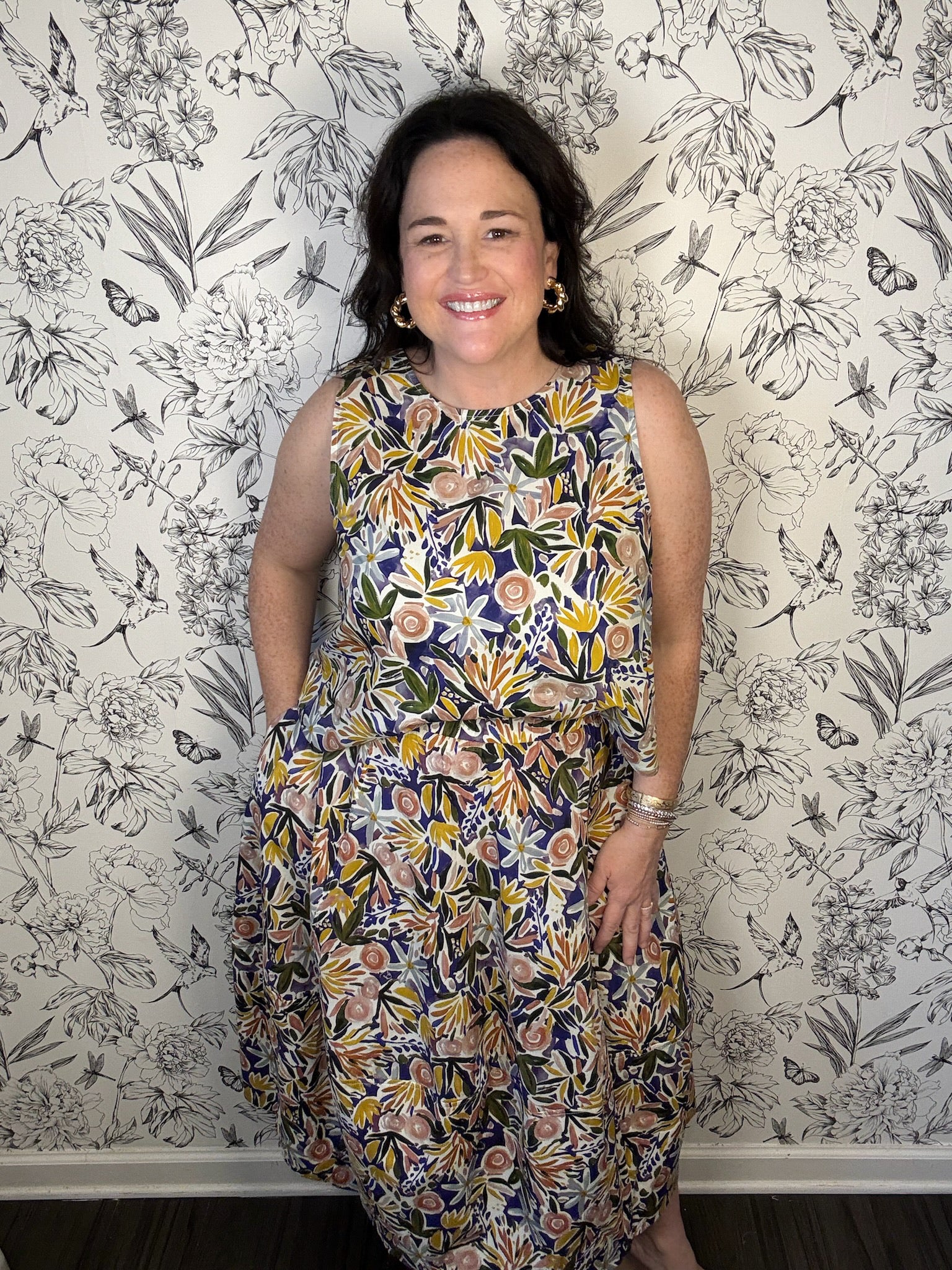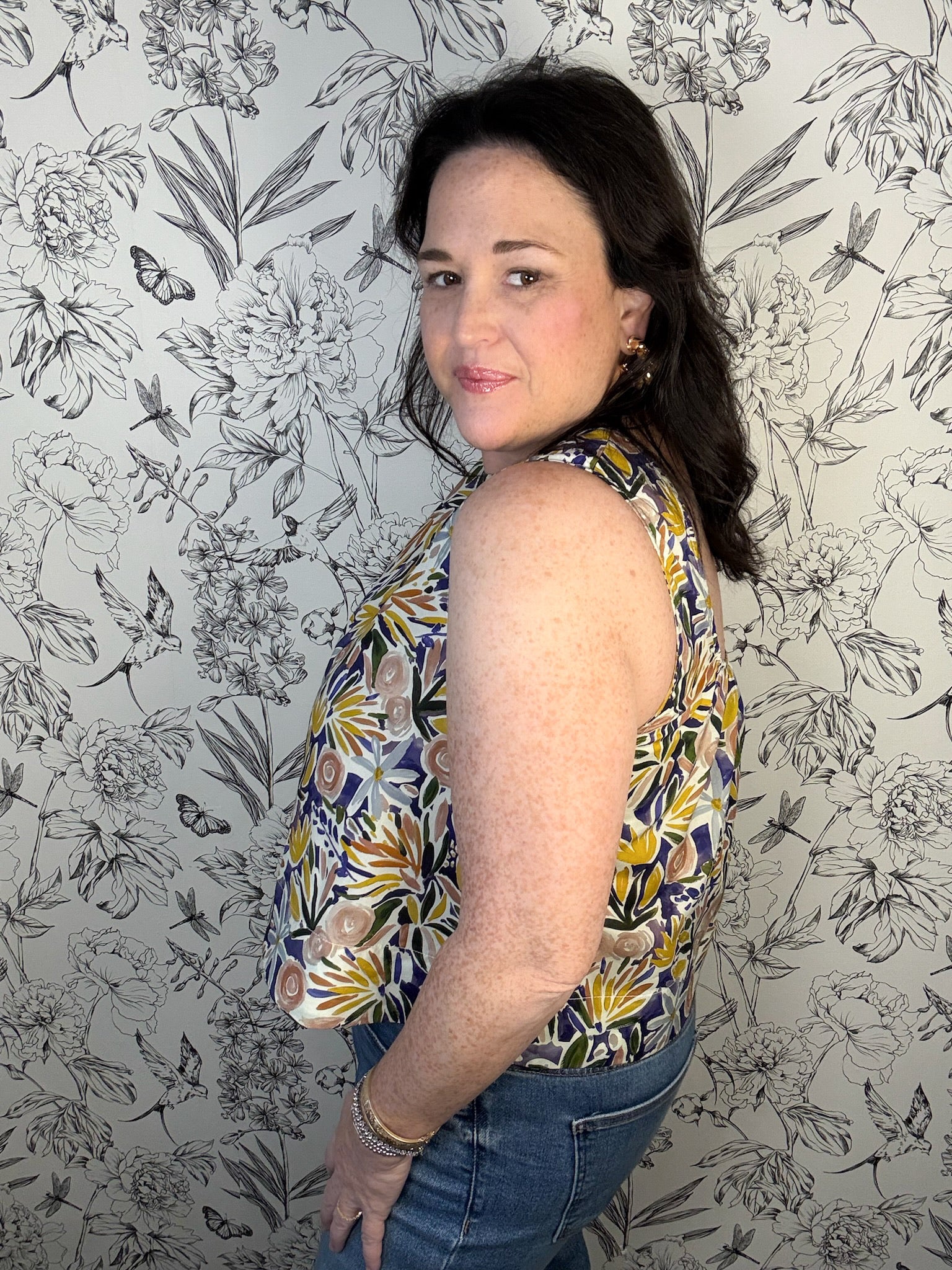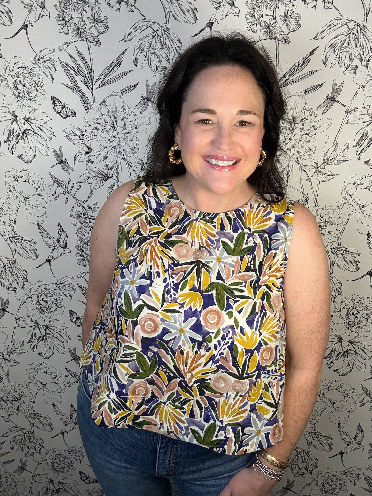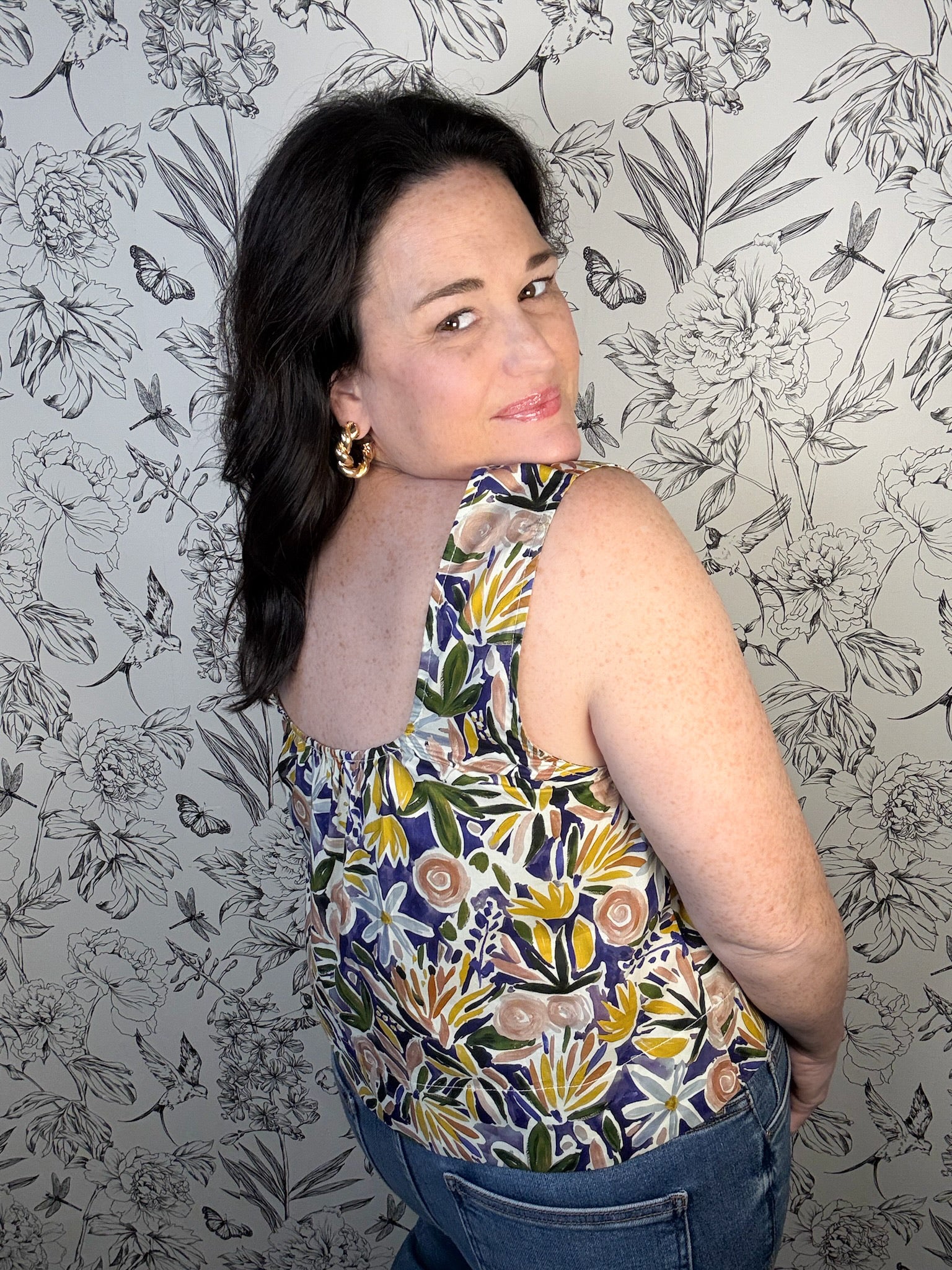 This cheerful tank top brings a touch of whimsy to your everyday wardrobe with its flattering round neckline and breezy silhouette. The standout feature? A gorgeous scoop back adorned with delicate pleats that add dimension and movement. Layer it over your go-to jeans for casual charm, or coordinate with the matching Poppy Bloom Skirt to create an instantly put-together look that feels fresh and fun.