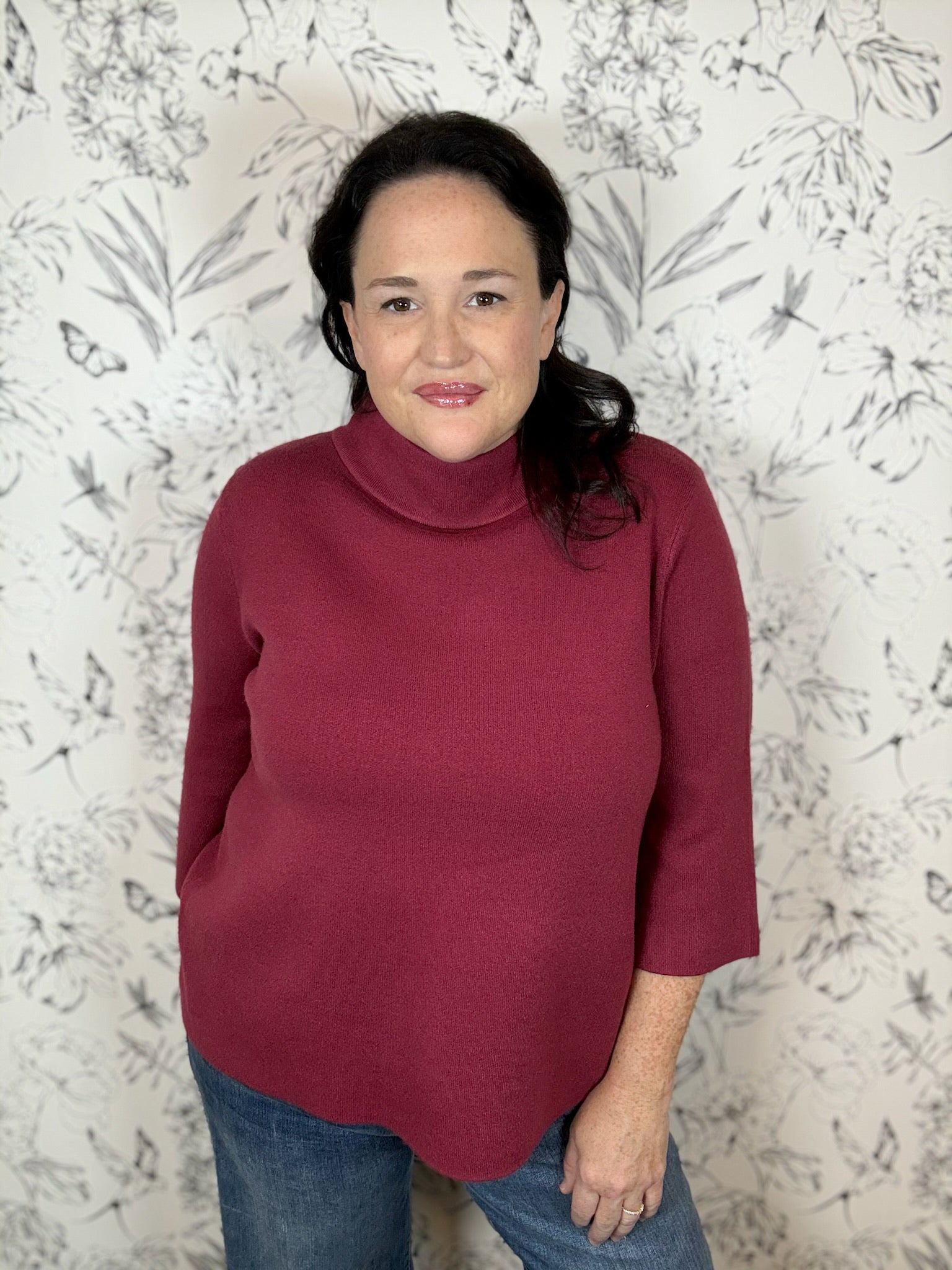 The Sugared Cranberry Mock Neck Sweater features charming 3/4 bell sleeves and a timeless shape that’s refreshed every season. With its cozy, ultra-soft fabric and flattering fit, it’s the perfect playful twist on a classic favorite.